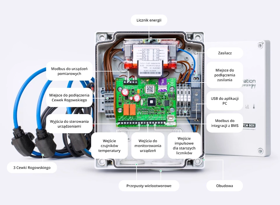 Zamów urządzenie TCM BOX. Podłącz je zgodnie ze schematem i zacznij odczytywać dane na panelu Innovation Energy.