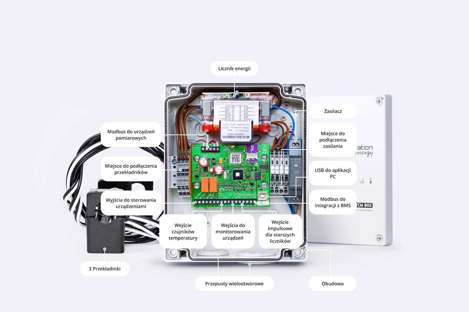 Zamów urządzenie TCM BOX. Podłącz je zgodnie ze schematem i zacznij odczytywać dane na panelu Innovation Energy.